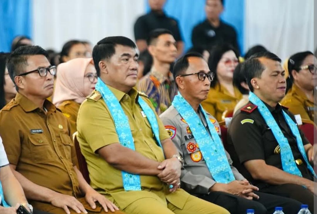 Gubernur Yulius Selvanus saat menghadiri Pembukaan Musyawarah Kerja Kepala Sekolah (MKKS) SMA/SMK/SLB se-Sulut di Aula Mapalus Kantor Gubernur, Senin (26/05/2025).